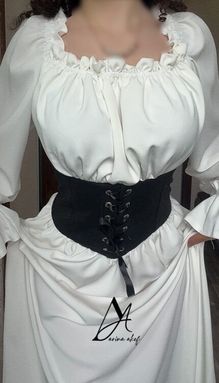 پیراهن کرست ژاکارد سفید استین کلوش طرح کرست زنان قاجار