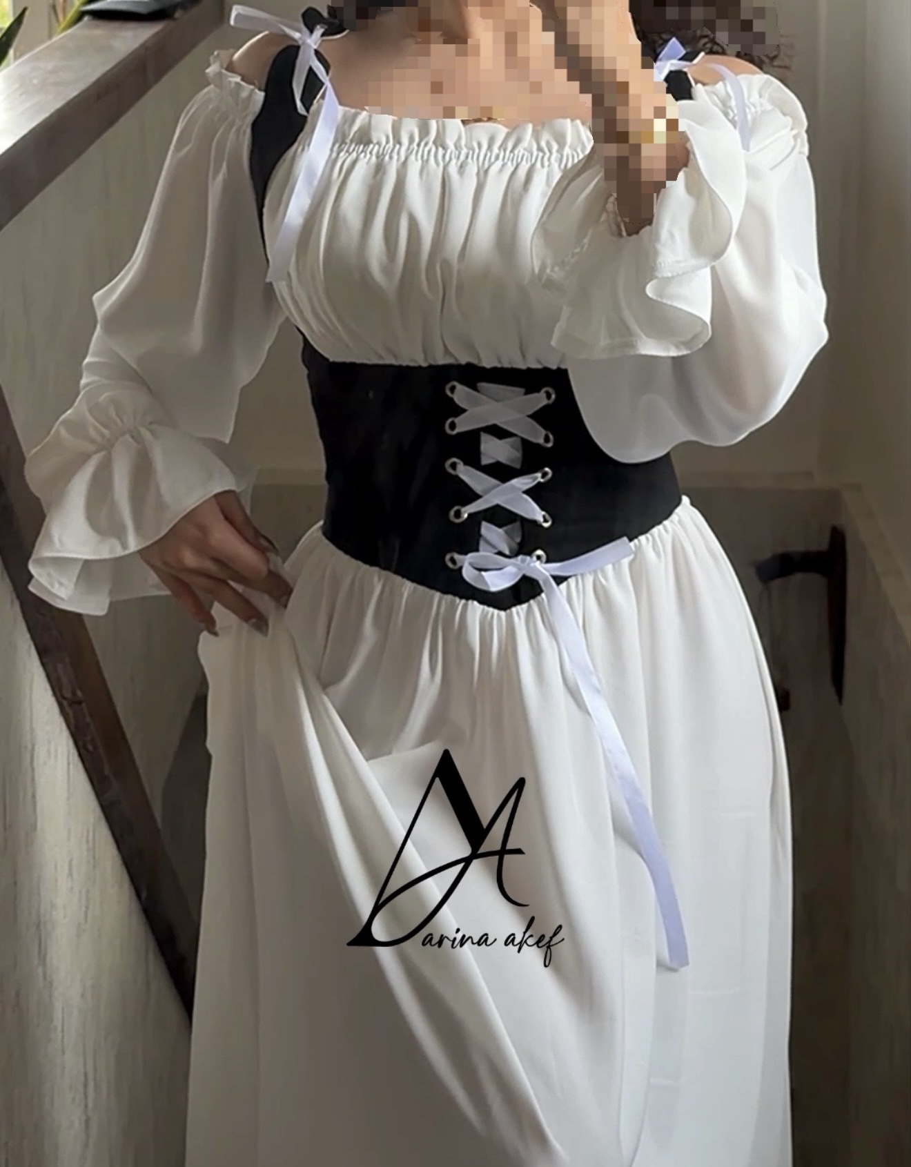 پیراهنِ اف شولدر سوییت مشکی بند سفید
