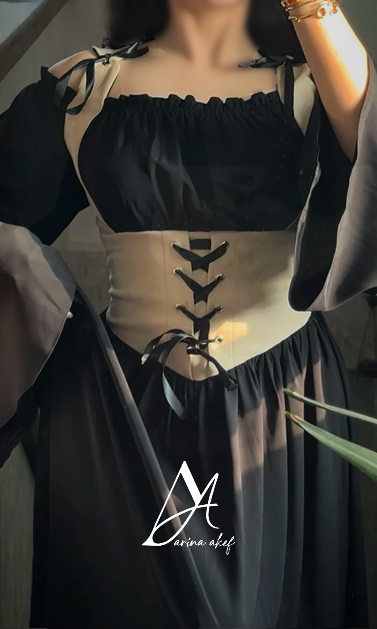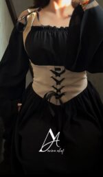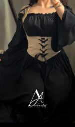 پیراهن مشکی کرست قهوه ای